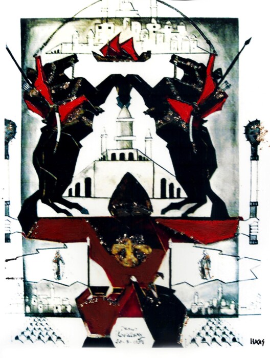 Large-format paintings (250 x 200cm) on the history of the Don Cossacks, from the 16th to the 19th century, involving Denys Ilovaïsky, a descendant of one of the most illustrious Cossack families, whose portrait gallery is at the Hermitage Museum in Saint-Petersburg.