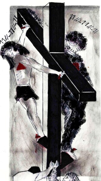 Jesus and the big ape on the cross, with their mother at their feet.