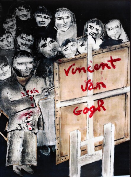 Vincent Van Gogh goes to paint in the countryside, his pipe between his teeth. Children chase him down the street, calling him names and throwing stones at him.