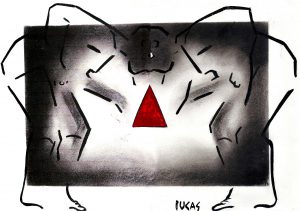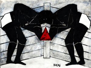 Ce triangle rouge abstrait peint par Joseph avec son sang est le symbole vivant de l’incompréhension des hommes, de leur folie destructrice, qu’ils soient de couleur différente, d’une même couleur, d’une même race ou d’une même famille…
