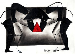 Quand nous écrivions que l’appropriation d’un espace sur la toile, par des hommes -les toreros-, qui ont fait de leur vie un sacerdoce, ouvre une nouvelle problématique plastique et de nouveaux horizons pour l’art de ce siècle, nous ne croyions pas si bien dire. Avec cette célébration rituelle sur un support traditionnel de peinture, grande par le respect de la forme et de l’objet comme le disait René Huyghe, Lucas nous fait la démonstration éclatante du pouvoir créateur qui est donné aux vrais artistes.
